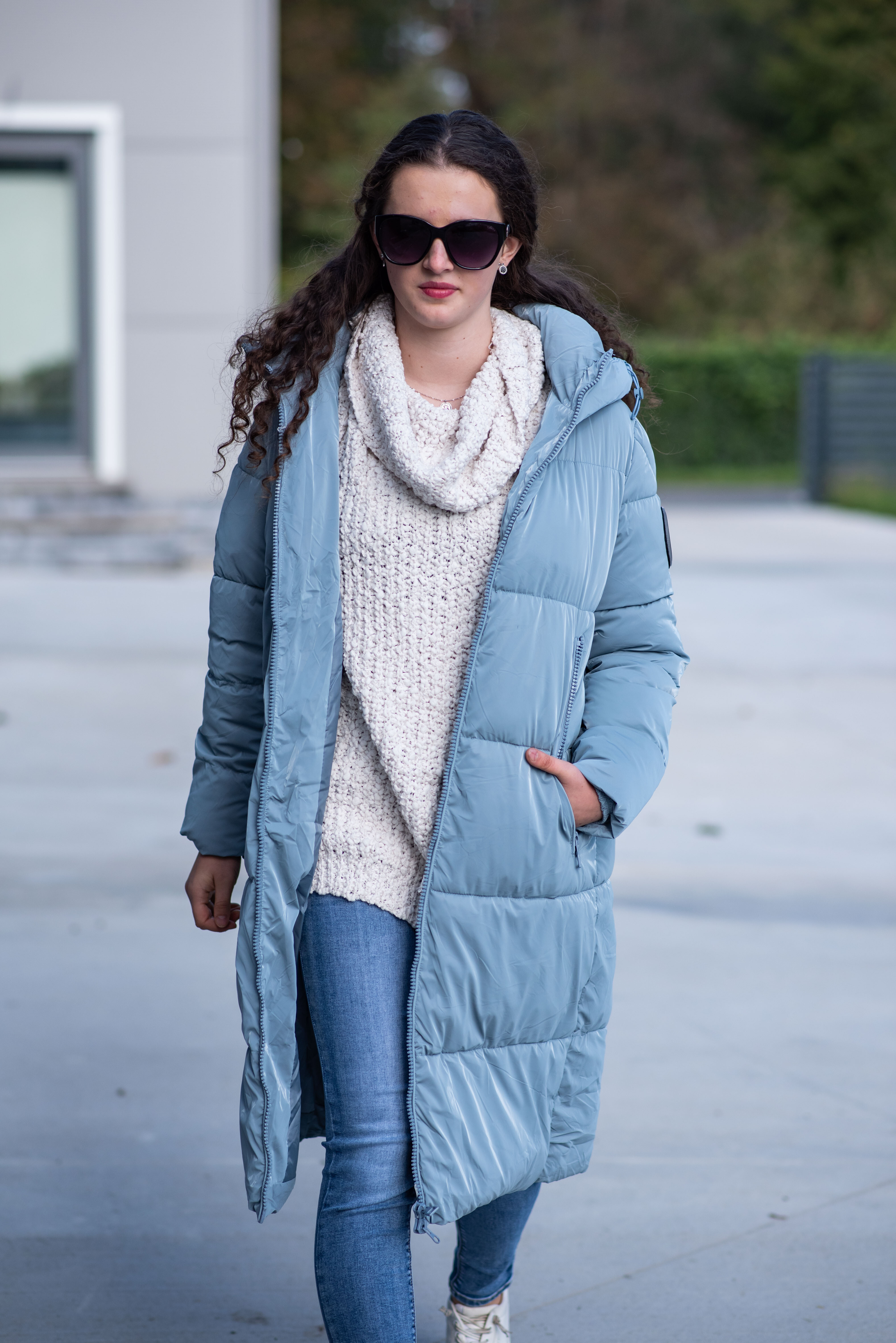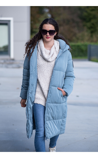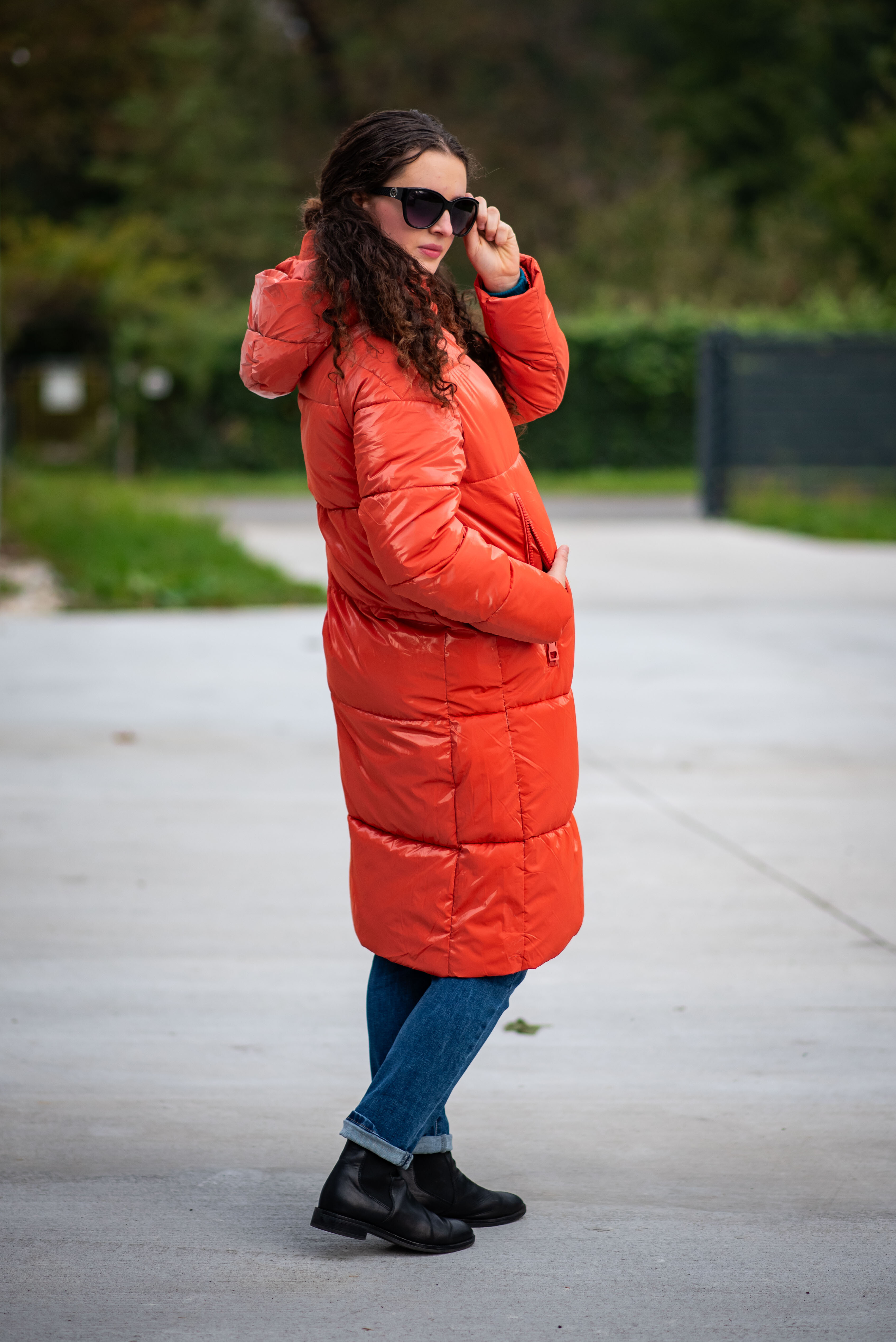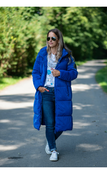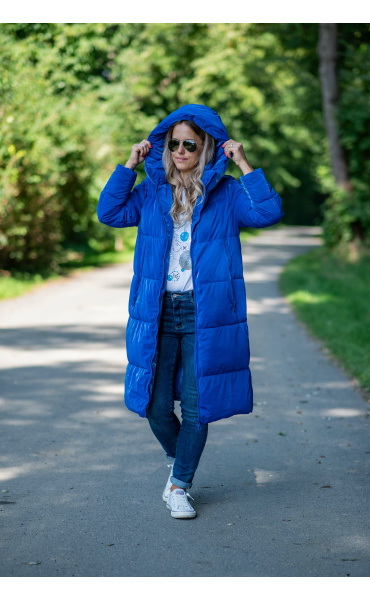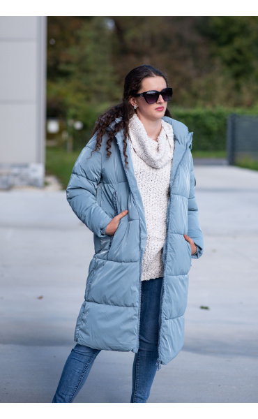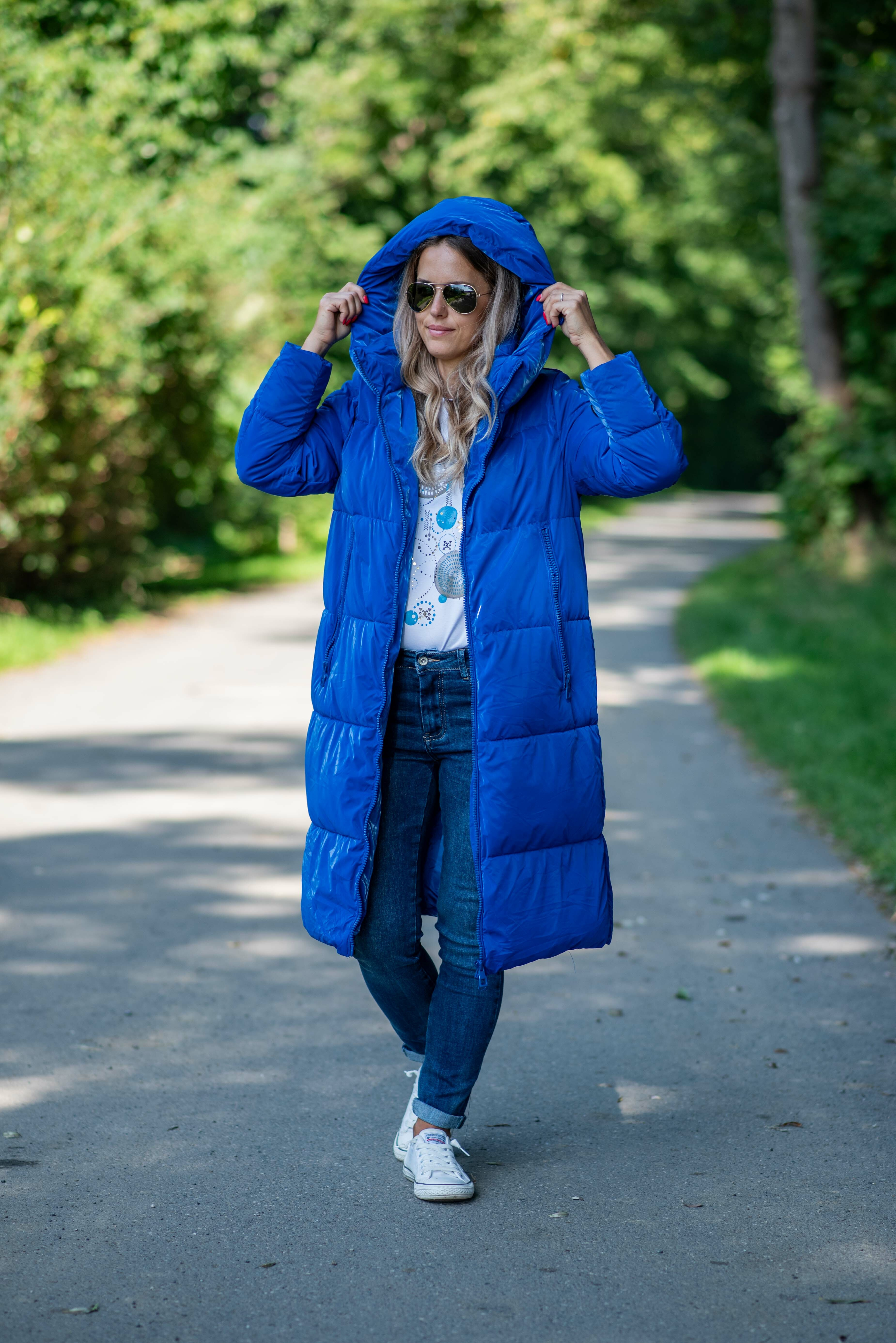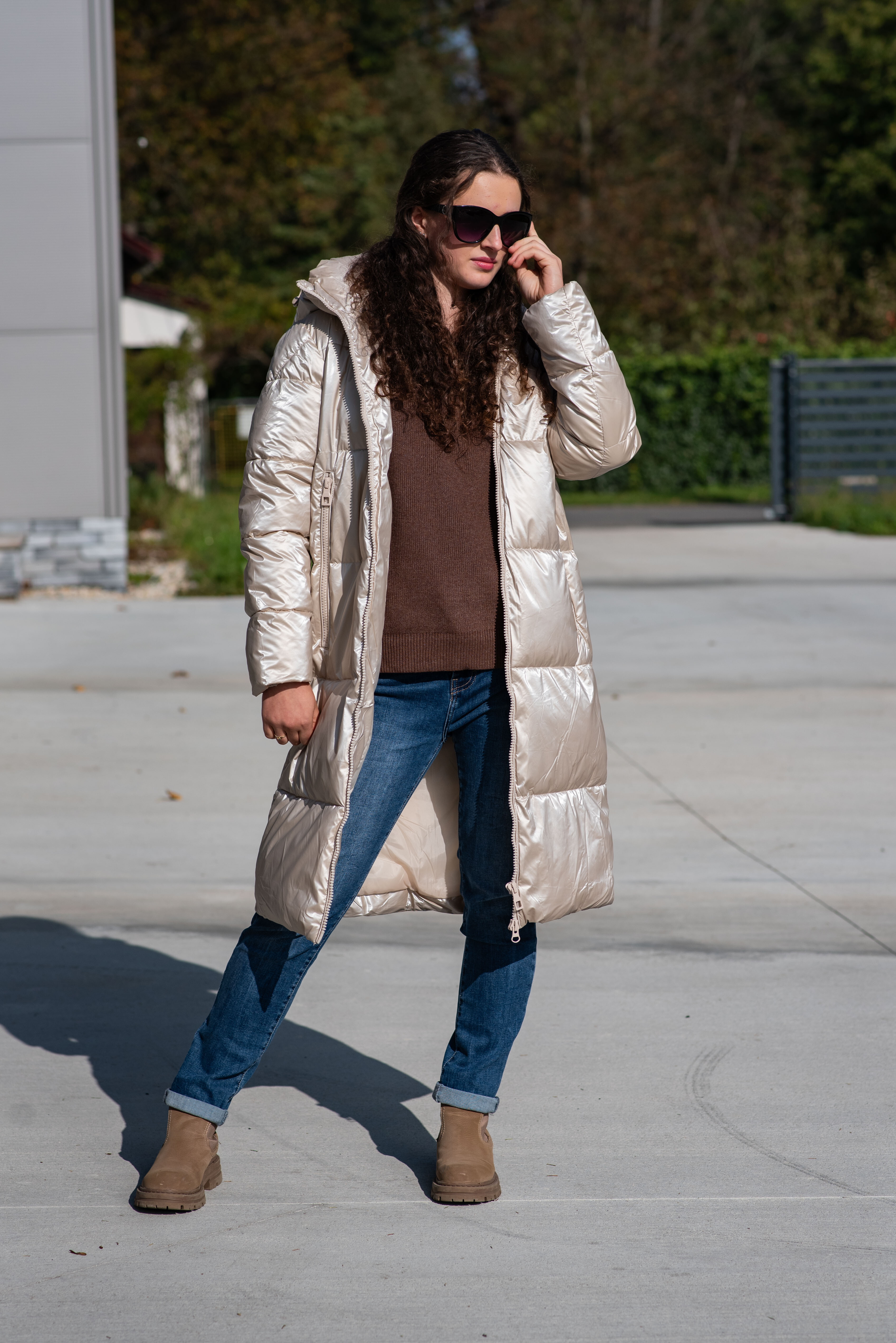 Módní delší zimní bunda s odepínací kapucí , vnitřní kapsa na mobil. Itálie