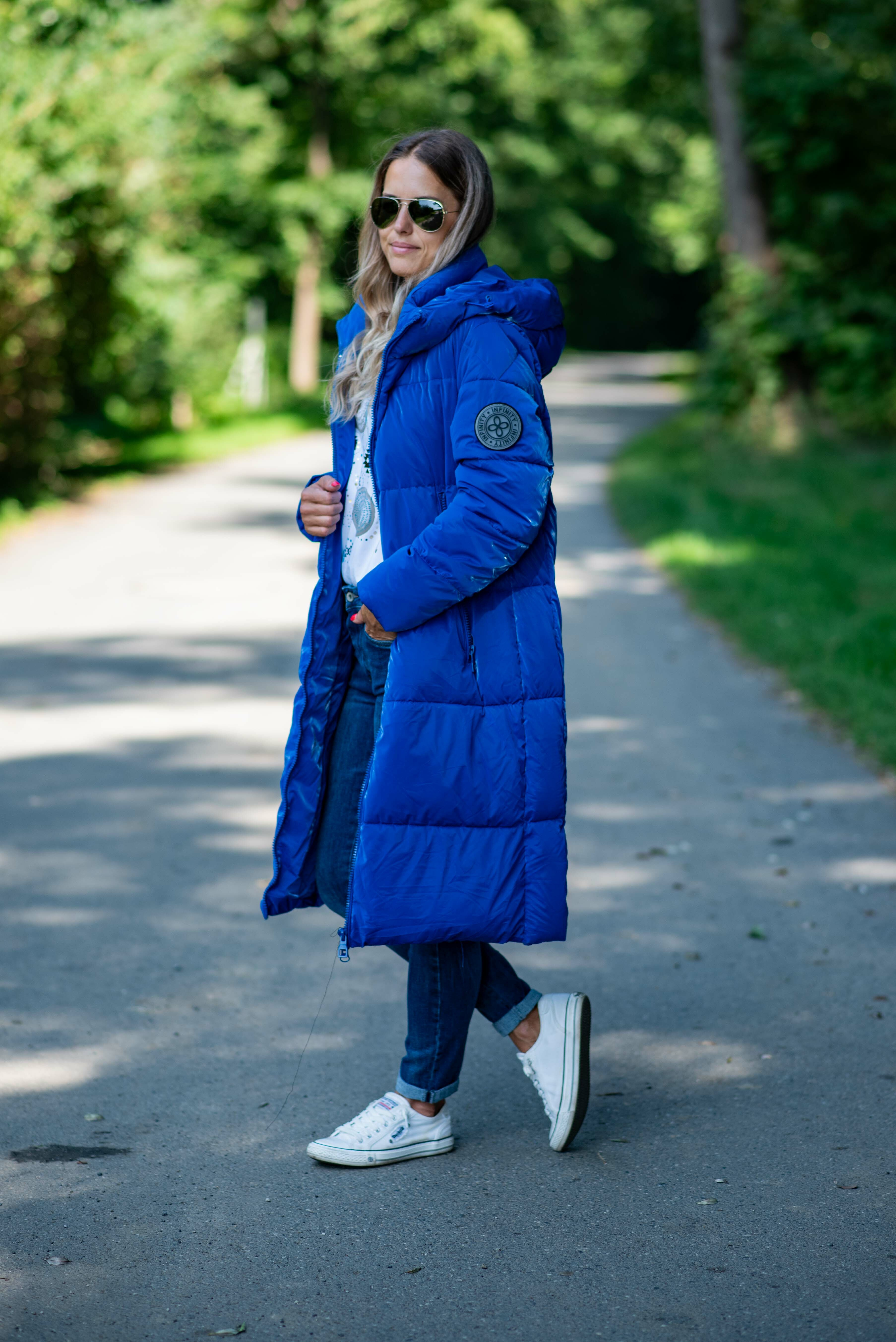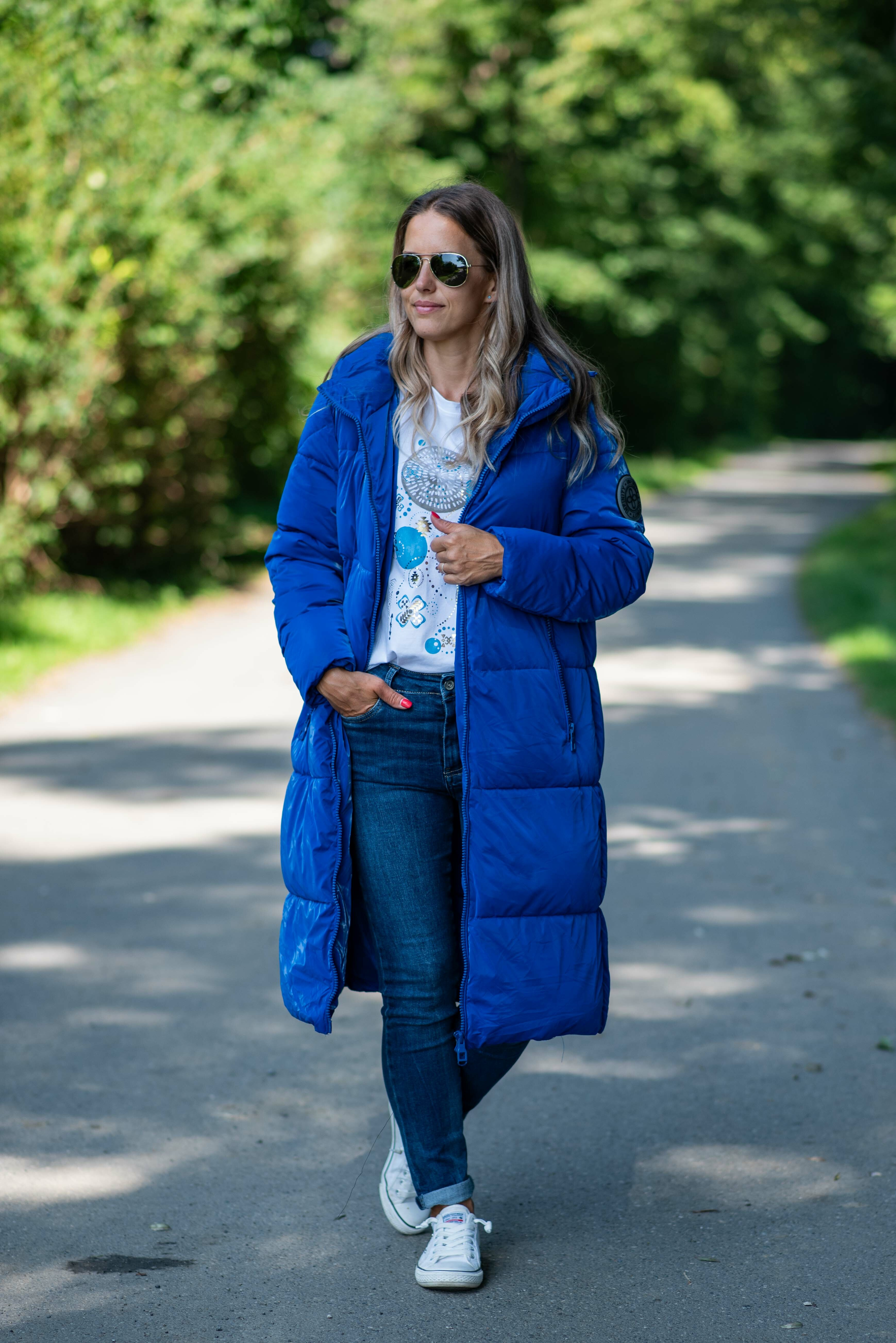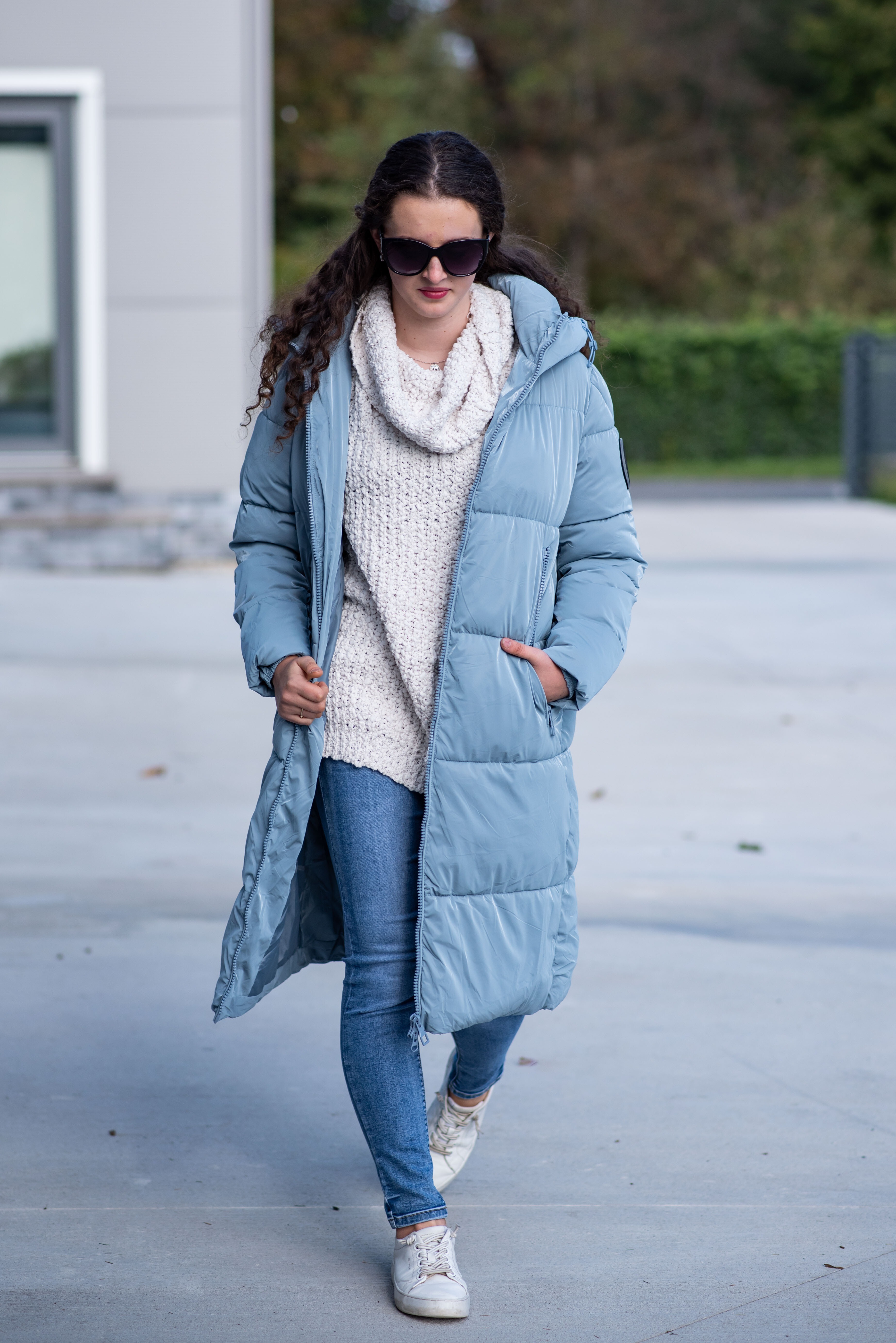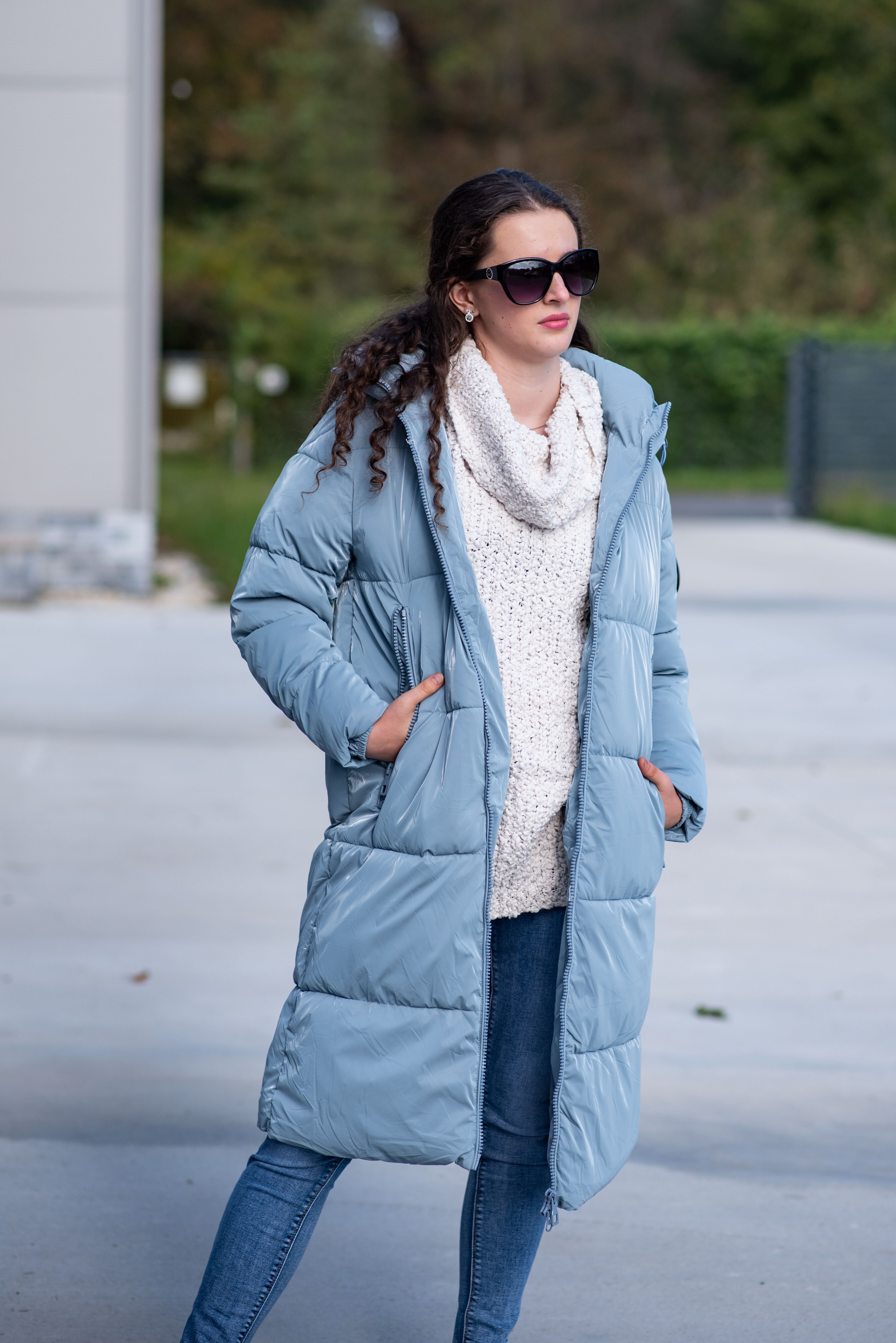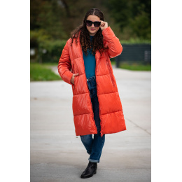 Módní delší zimní bunda s odepínací kapucí , vnitřní kapsa na mobil. Itálie